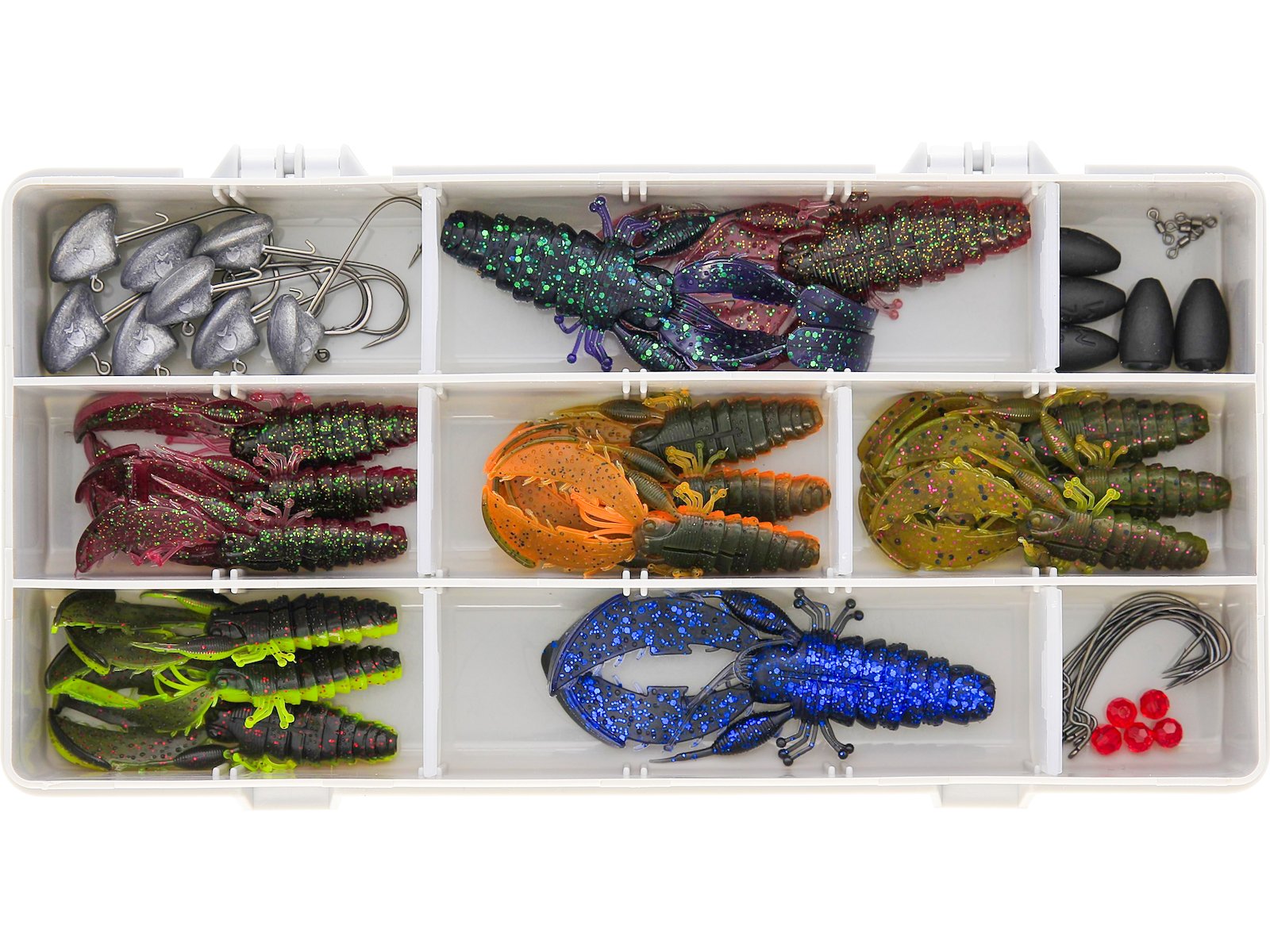 Boîtes à pêche Westin contenant la combinaison parfaite de leurres souples, d'hameçons, de têtes plombées, de poids et d'accessoires de pêche. Il suffit de prendre une boîte et de partir pêcher ! Elles contiennent des leurres et des accessoires Westin originaux adaptés aux techniques de pêche les plus courantes, quels que soient le matériel choisi ou les espèces ciblées. Contenant nos leurres souples Westin les plus vendus, dont beaucoup dans des couleurs spéciales, ces boîtes sont conçues pour s'adapter à un large éventail de lieux et de conditions. Les neuf boîtes de la gamme ont été conçues pour couvrir à la fois la pêche depuis le bord et la pêche en bateau. La pêche avec des Craws, en particulier le CreCraw, est très tendance et extrêmement efficace pour le bar, la perche et le sandre. Dans cette boîte, vous trouverez tous les composants essentiels et les leurres les plus attractifs pour pêcher avec les impressionnants CreCraws.