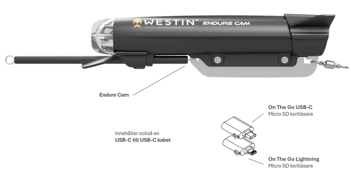 Westin introducerar nya Endure Cam – byggd för trolling, redo att fiska! Den ultimata kompanjonen under trollingturerna: Den här kameran är designad för tillförlitlighet och enkelhet och är redo att fiska direkt ur lådan – ingen montering krävs. Med en robust konstruktion och förlängd batteritid fångar den varje ögonblick av ditt äventyr under vattnet. Endure Cam är tillverkad av slagtålig polykarbonat och rostfritt stål av marin kvalitet som är klassificerat till 75 kg och ger kompromisslös styrka och hållbarhet för seriösa sportfiskare. Endure Cam är perfekt balanserad för trollingfiske och ger upp till 3 timmar och 40 minuter kontinuerlig inspelning. Dess strömlinjeformade design säkerställer stabilitet även vid varierande hastigheter, medan den intuitiva användningen gör det enkelt att börja filma. Oavsett om du letar efter nya vatten, analyserar betesprestanda eller delar episka fångster, ger Endure Cam den skärpa och uthållighet du behöver. Byggd tuff, enkel att använda och konstruerad för uthållighet – Endure Cam är ditt fönster mot världen under vattnet.